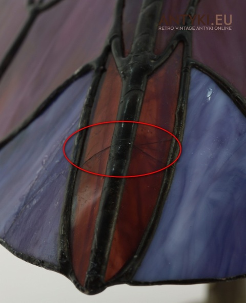 UWAGA: Lampka zachowana jest w dobrym stanie ale posiada trzy niewielkie uszkodzenia na kloszu, które pokazujemy na trzech ostatnich zdjęciach (specjalnie sfotografowane z bliska). W rzeczywistości są mało widoczne i nie wpływają na użytkowanie ani walory estetyczne. Dlatego cena jest jaka jest a nie 1350 złotych.
