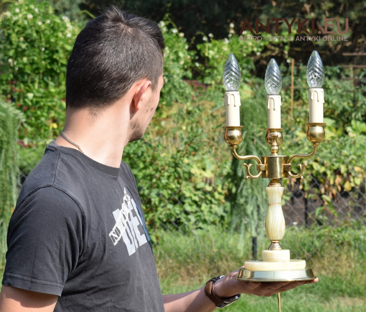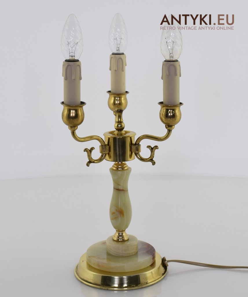 Starodawna lampa stołowa z onyksu i mosiądzu. Lampy retro.