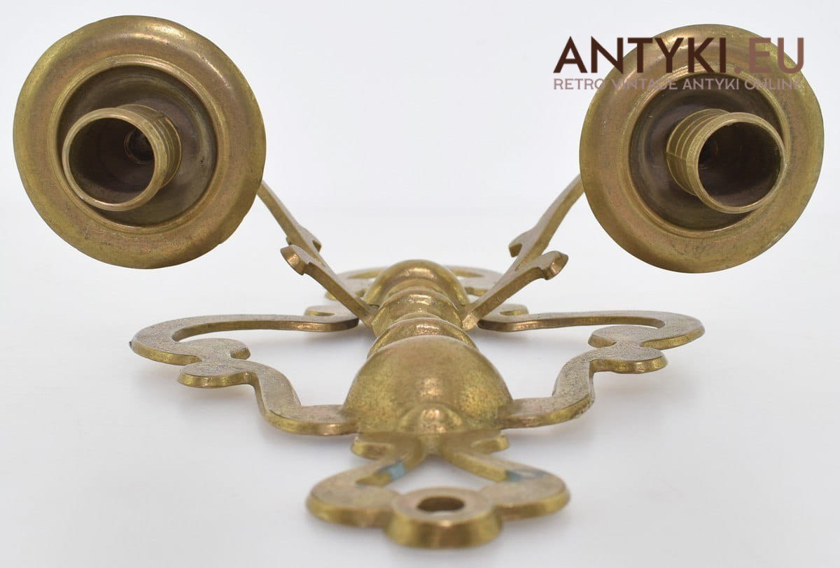 Starodawny świecznik mosiężny na ściane podwójny