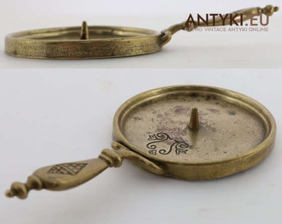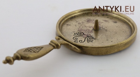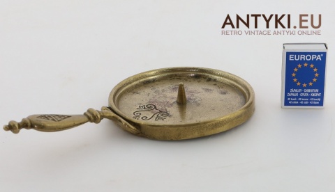 Antyczny świecznik z uchwytem – styl retro z Francji, idealny do wnętrz klasycznych i rustykalnych