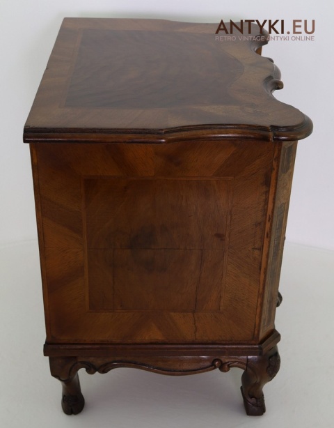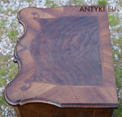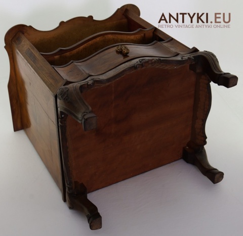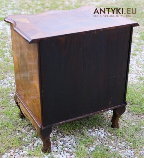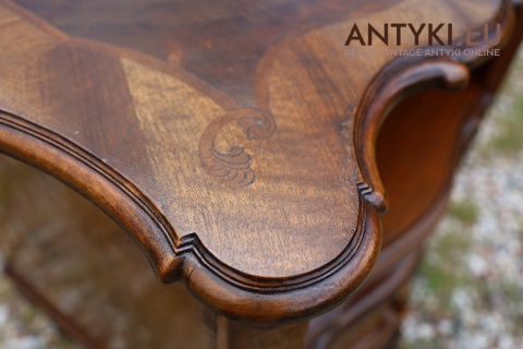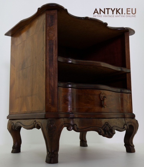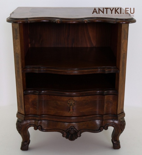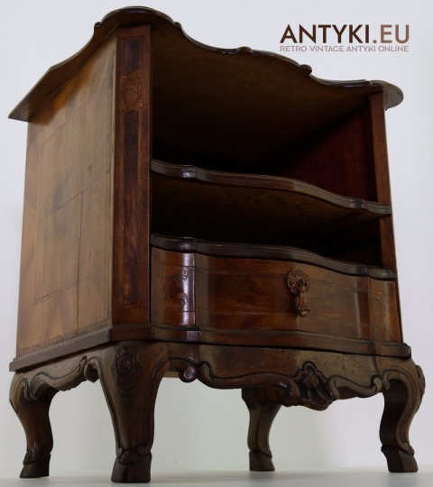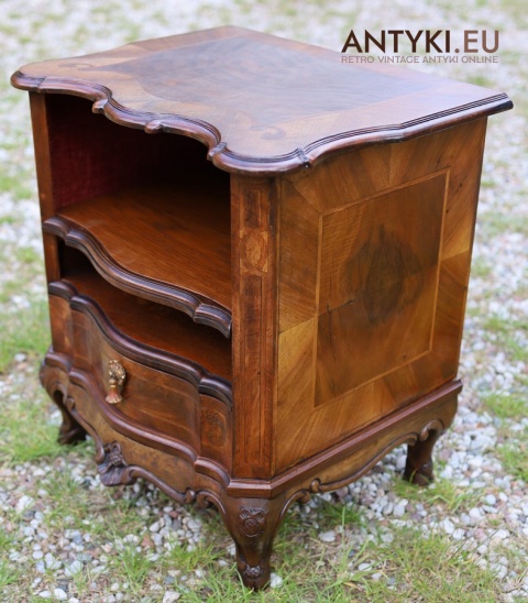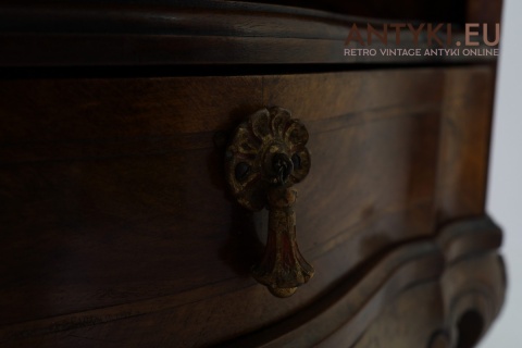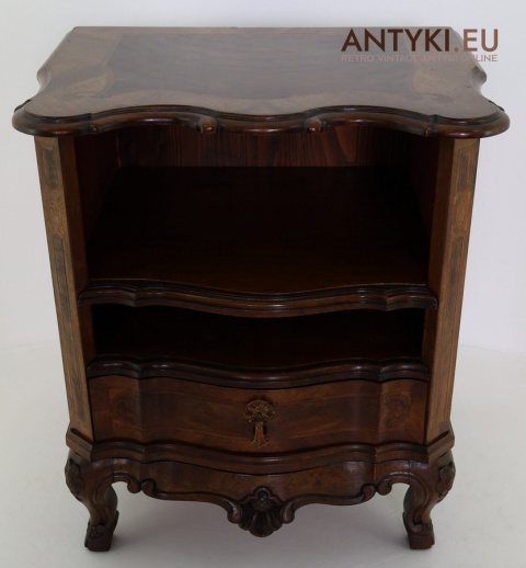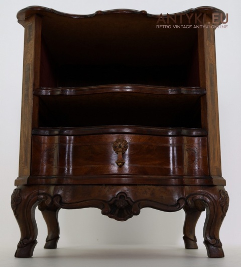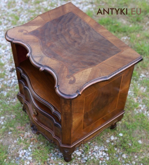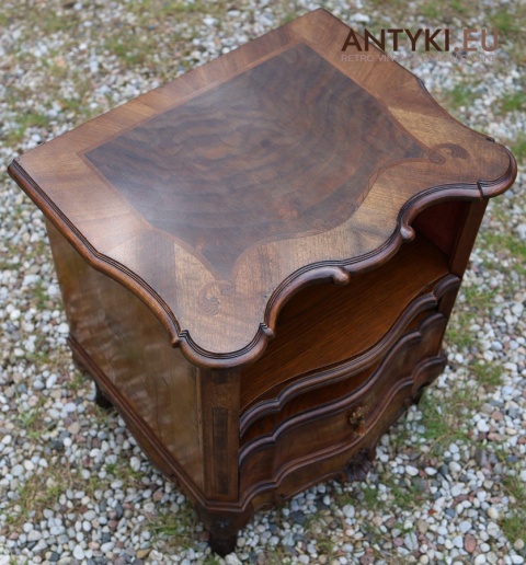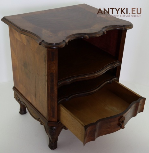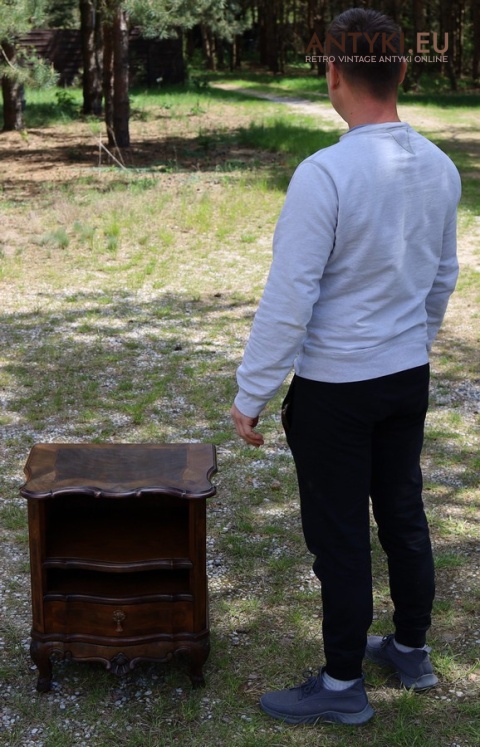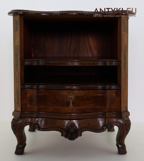 Ten antyczny mebel idealnie sprawdzi się jako szafka nocna, mebel pomocniczy w salonie, czy stolik przy fotelu w eleganckim gabinecie. To unikatowy egzemplarz, wykonany ręcznie – takich mebli już się nie produkuje. Styl Ludwika XV szczególnie polecany jest do wnętrz hotelowych, gabinetów kosmetycznych, kancelarii prawnych, a także jako element dekoracyjny do stylowej sypialni lub biblioteki.