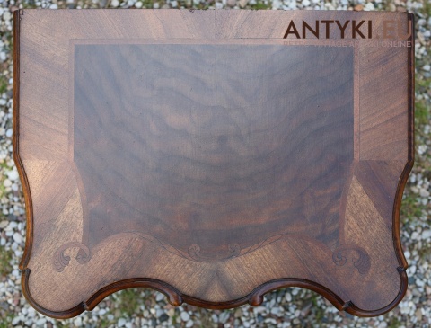 Materiał: lite drewno orzechowe z intarsjowaną płytą na blacie