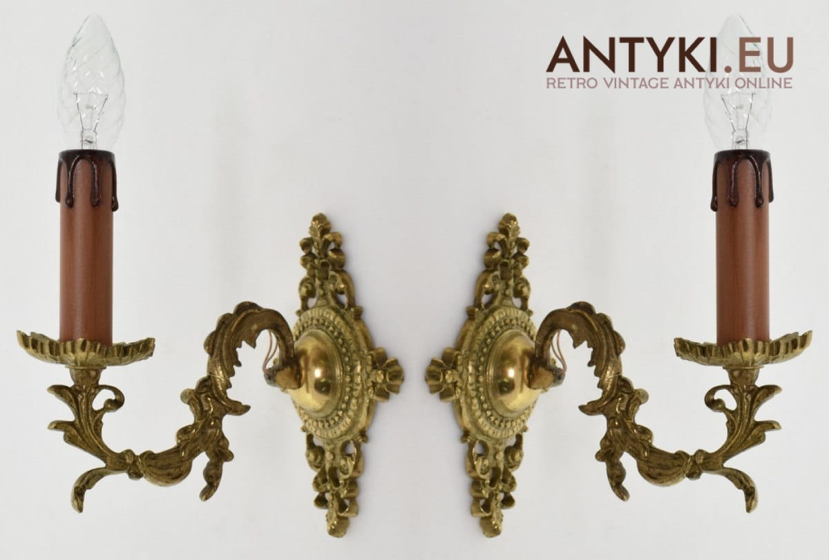 Stylowe kinkiety mosiężne. Stare lampy ścienne z mosiądzu.