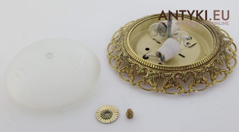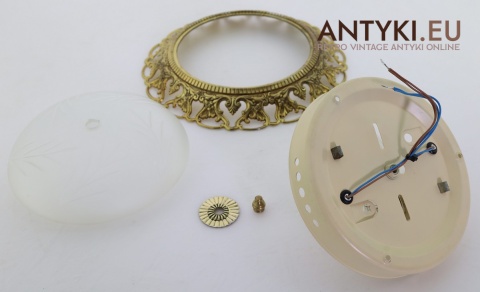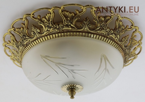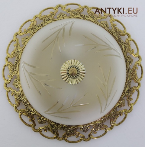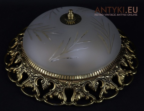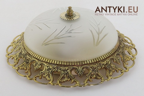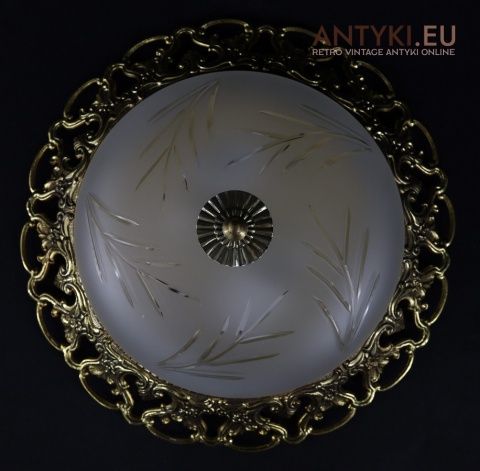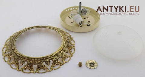 Oryginalny plafon retro z Francji – mosiężny ring i szlifowany klosz – unikatowe oświetlenie do aranżacji vintage / retro