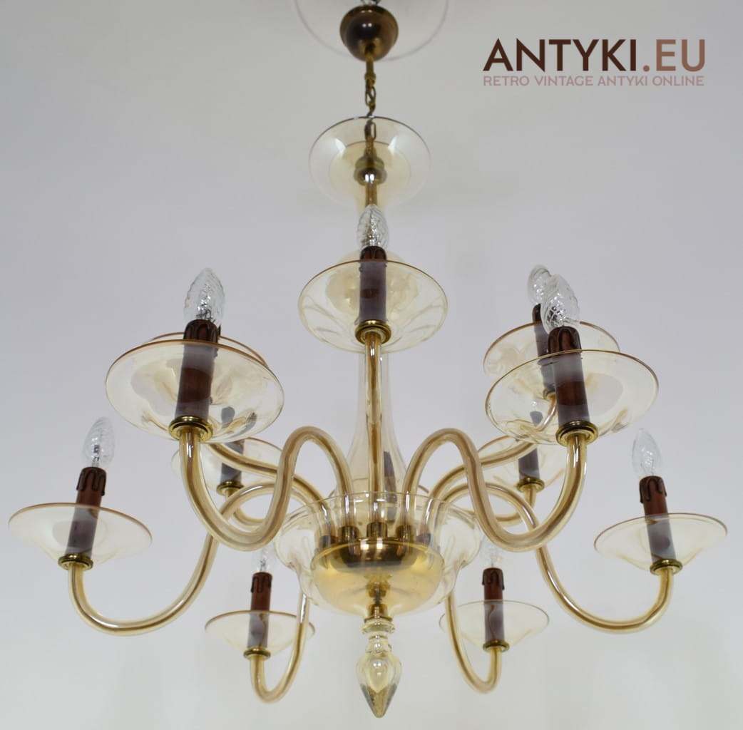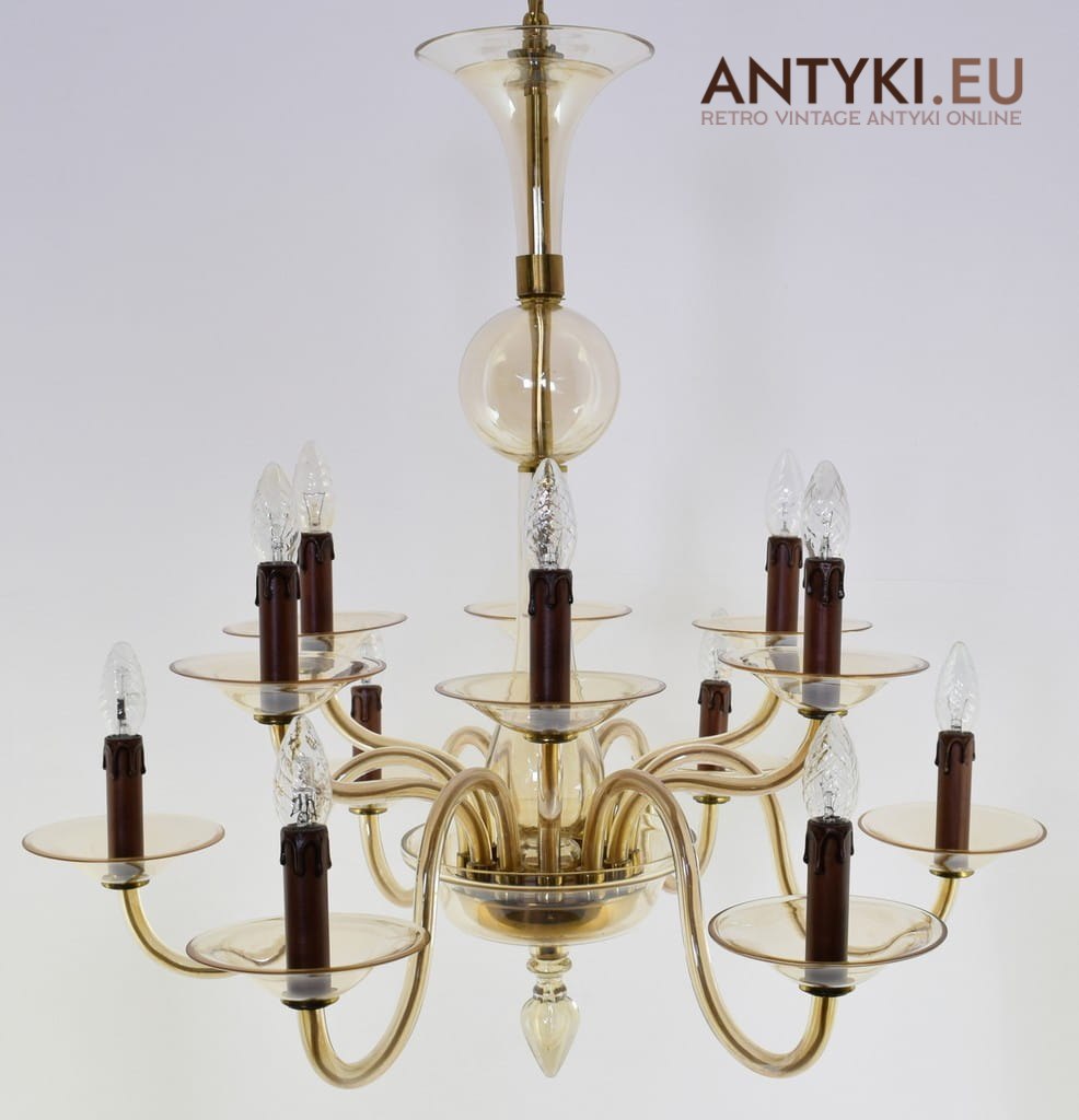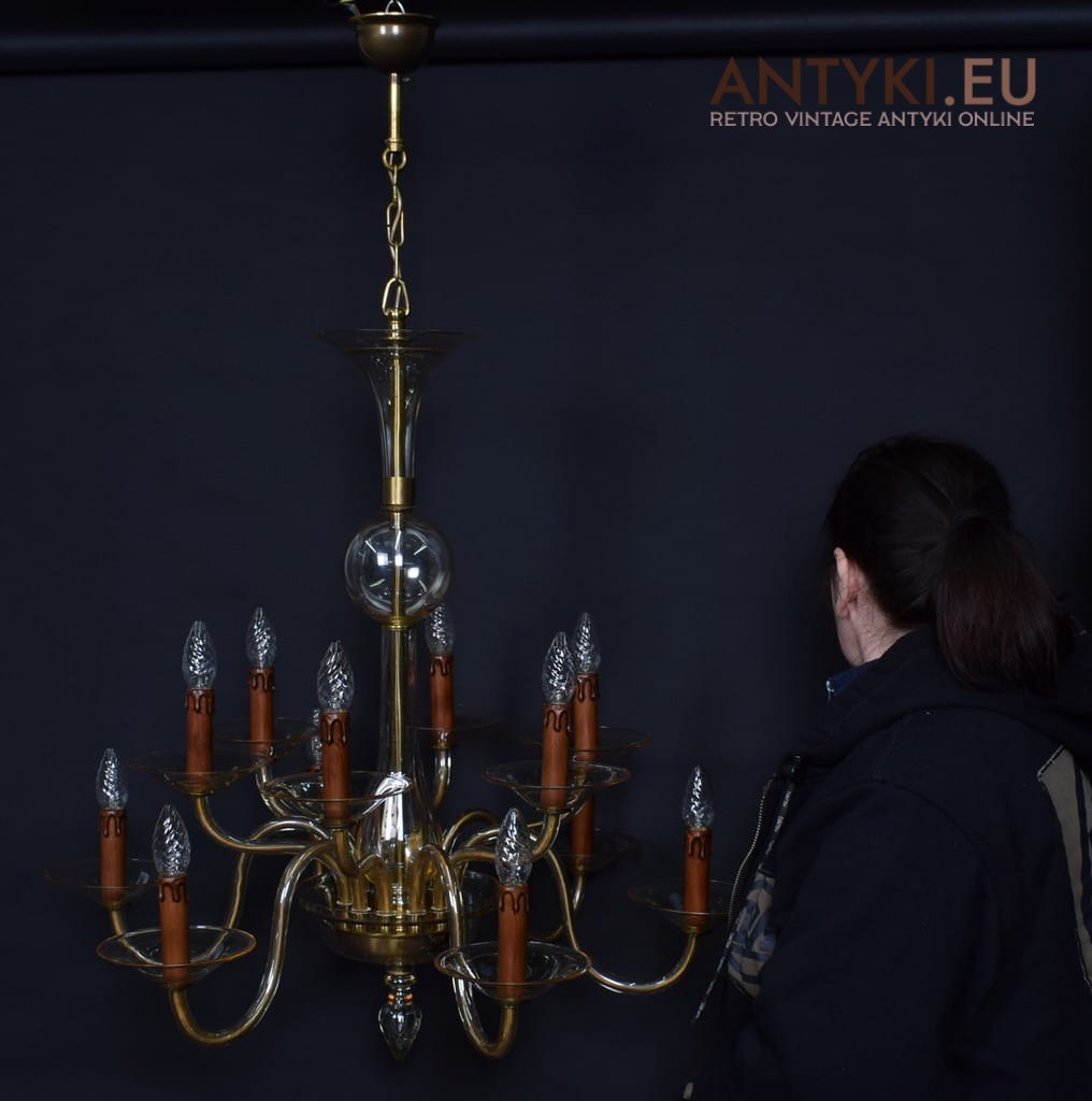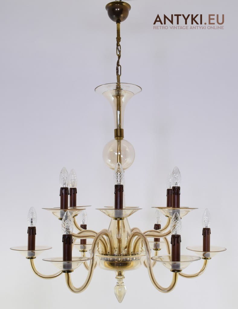 Szkalny żyrandol 12 ramienny. Szkło Bohemia.