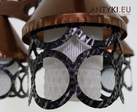 Materiał: lite drewno, żelazo, metal w kolorze miedzi, szkło prasowane