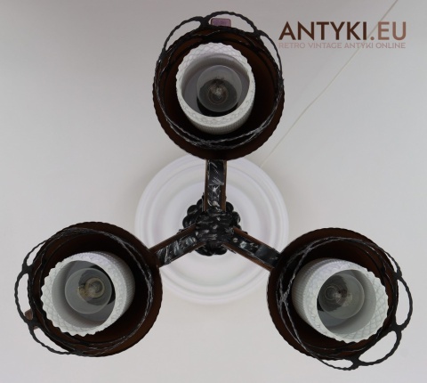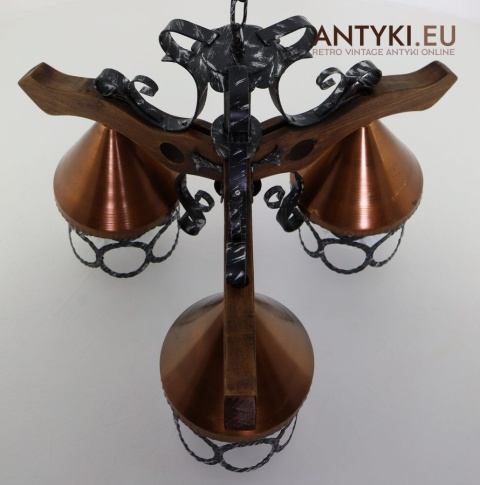 XL! DUŻY! Zjawiskowy żyrandol rustykalny 3-ramienny – oryginalne oświetlenie do karczmy / gospody / góralskiej i wiejskiech chaty