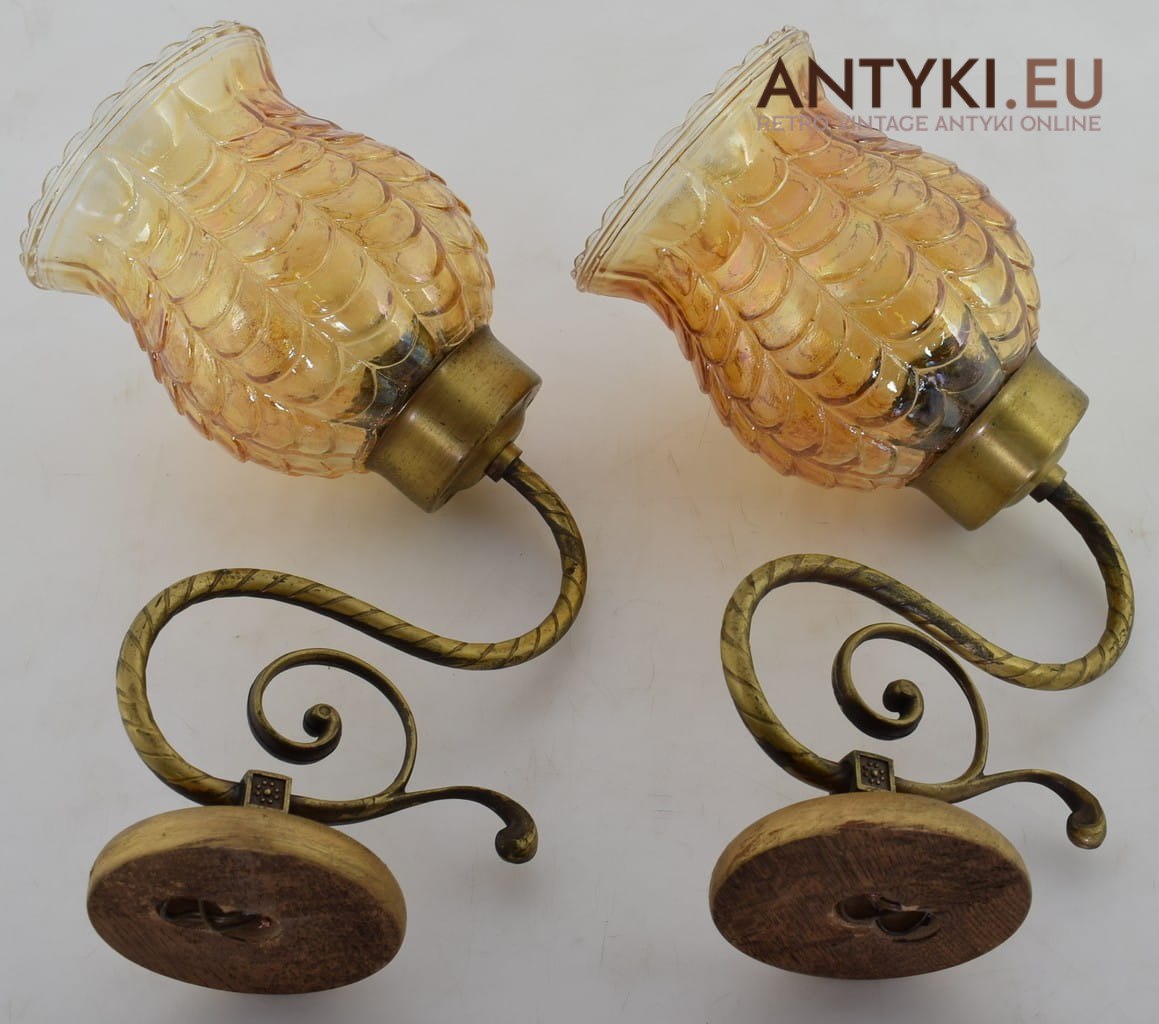 Sprowadzone z Austrii. Pochodzą z lat 1960-70. Wykonane z mosiądzu + opalizujące szklane klosze.