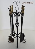Unikatowy, kuty zestaw narzędzi do czyszczenia kominka.