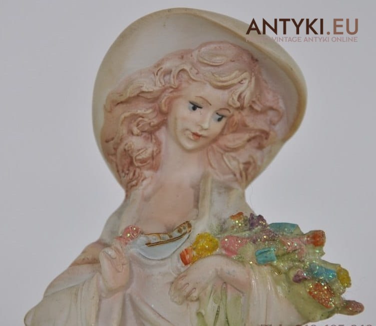 VINTAGE FIGURKA KOBIETY Z KWIATAMI DAMA Z KOSZEM