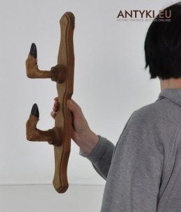 Do produkcji wieszaków wykorzystywano lite drewno, kuty metal i mosiądz. Świetnie komponują się z innymi dodatkami jak akcesoria kominkowe retro czy stoliki antyczne.