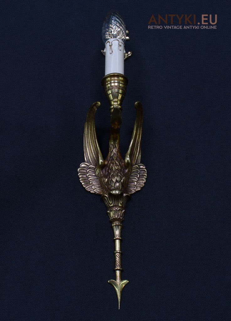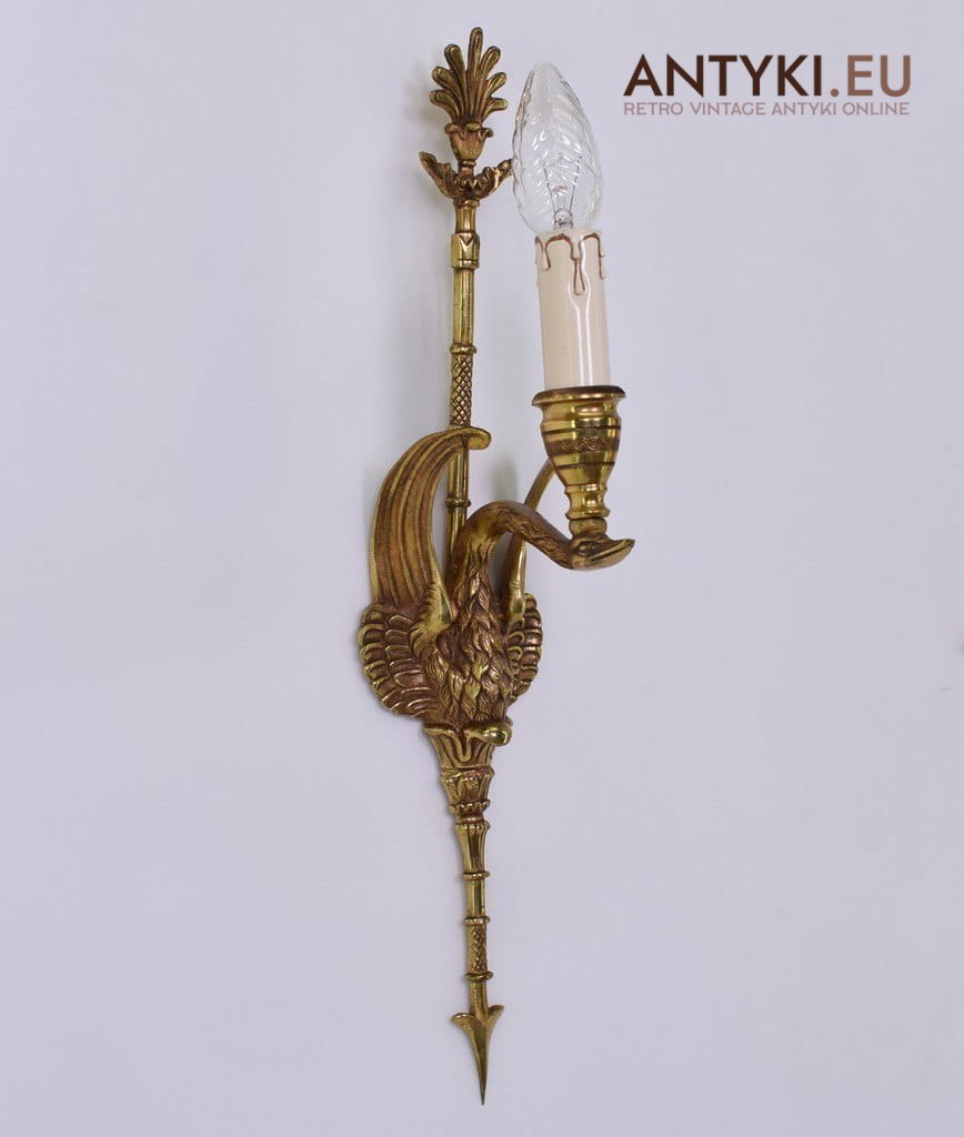 Wysoki kinkiet mosiężny łabędź. Secesyja lampka na ścianę oświetlenie Art Nouveau Jugendstil