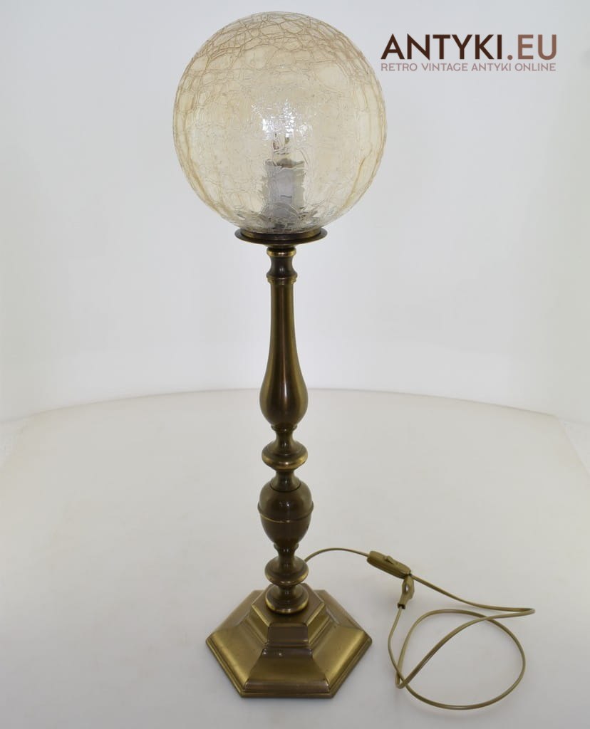 XL! DUŻA mosiężna lampa z kloszem na stolik. Lampy retro vintage do zamku, pałacu.