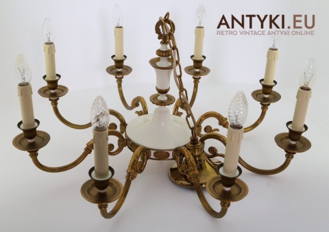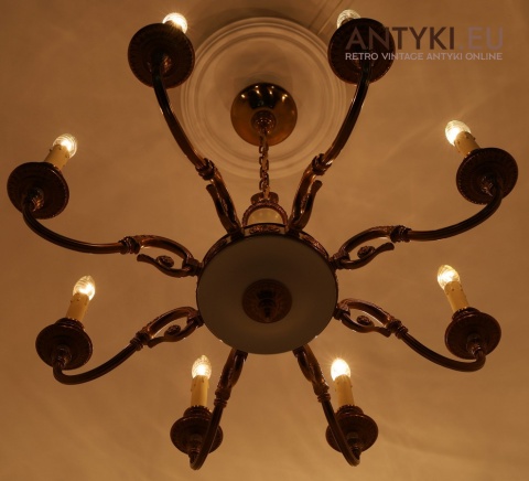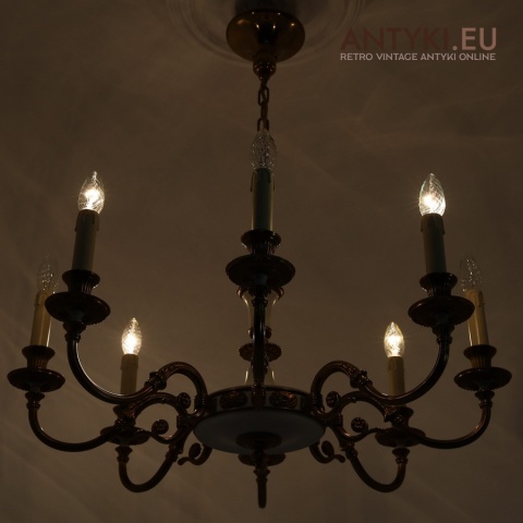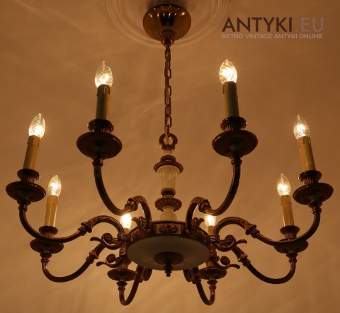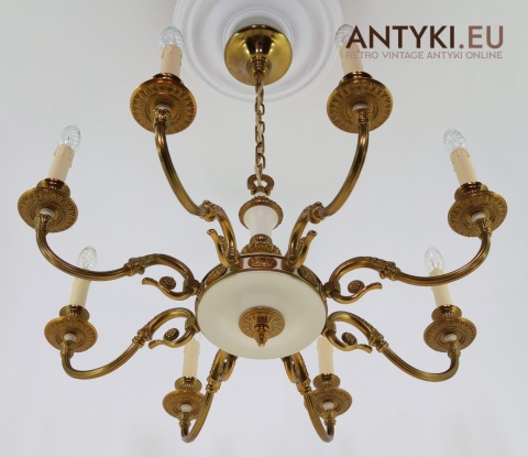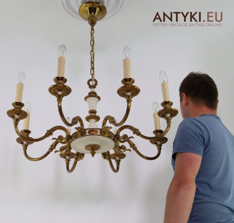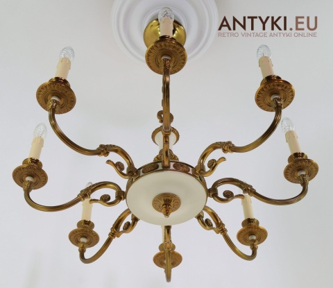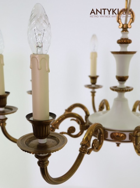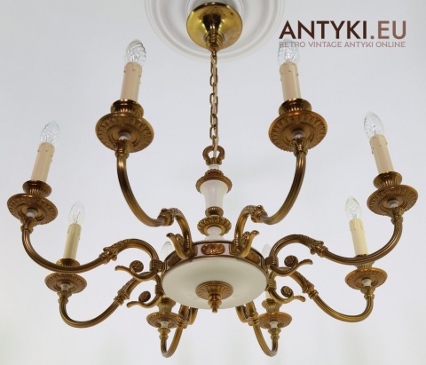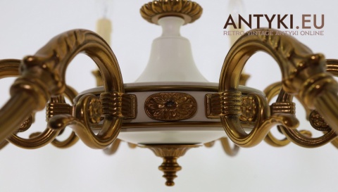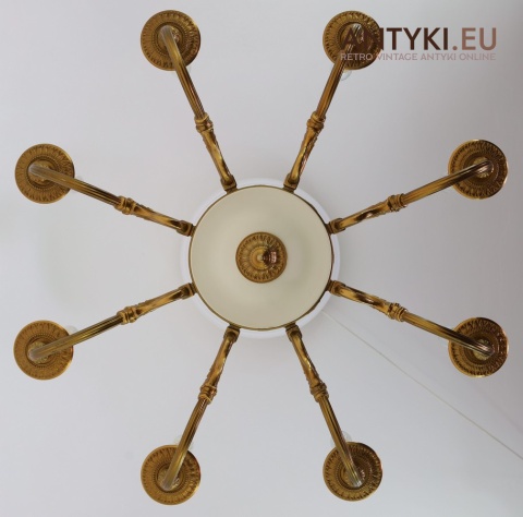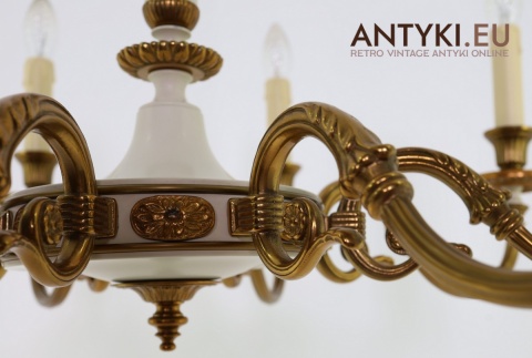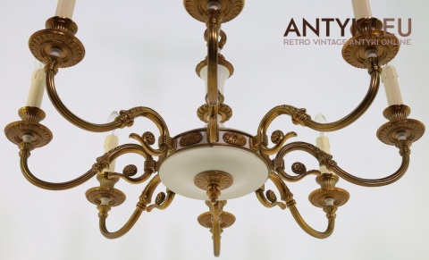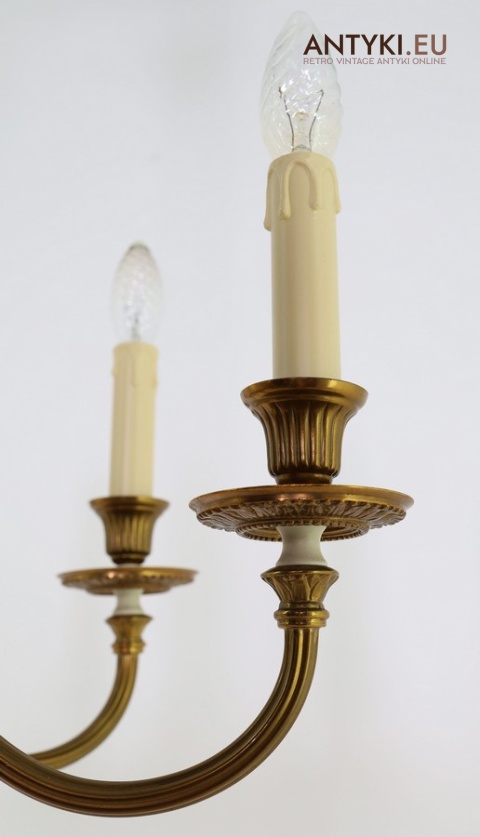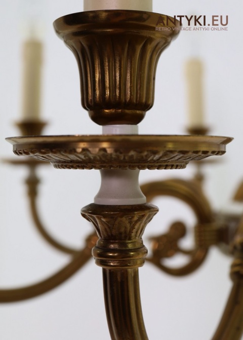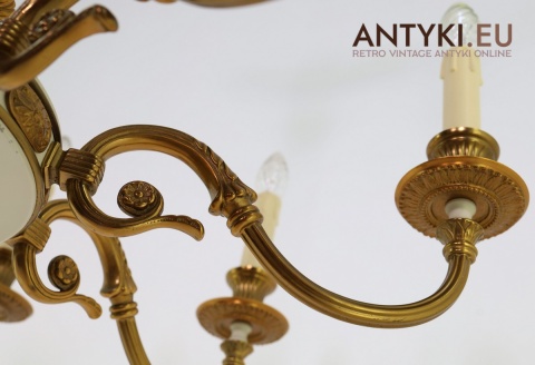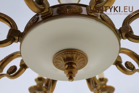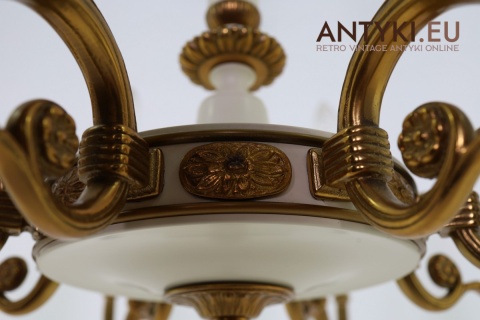 Styl Empire to synonim pałacowego przepychu i dostojeństwa – złocone wykończenia, ornamentalne detale i monumentalna forma sprawiają, że ten żyrandol to prawdziwy vintage skarb dla miłośników klasyki!