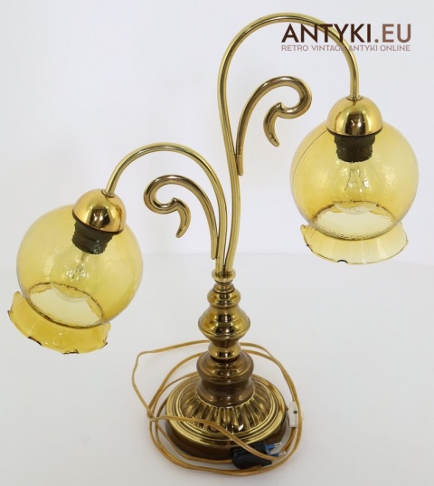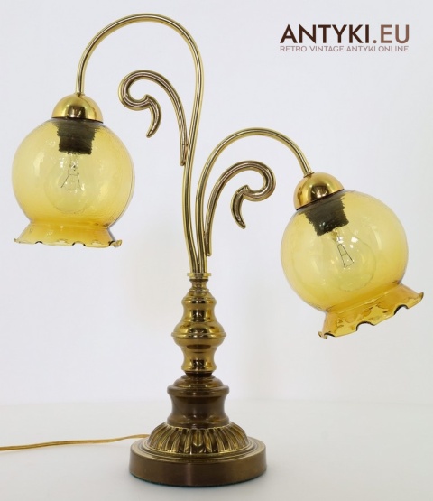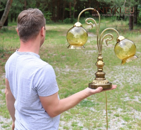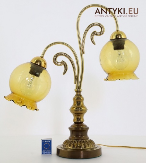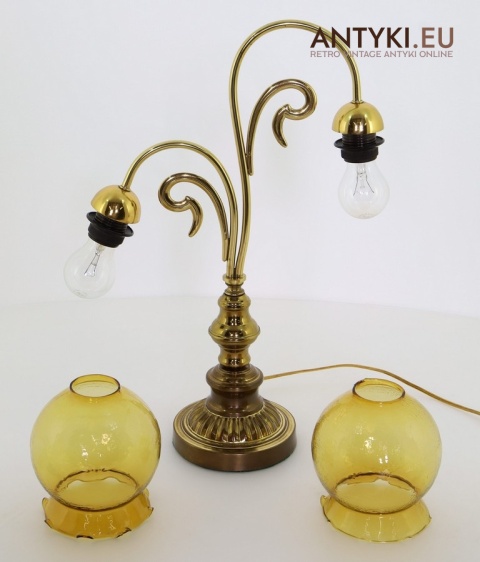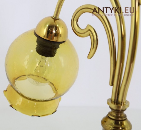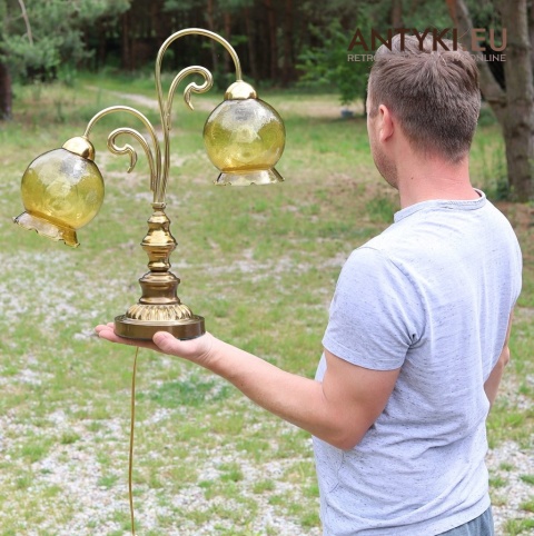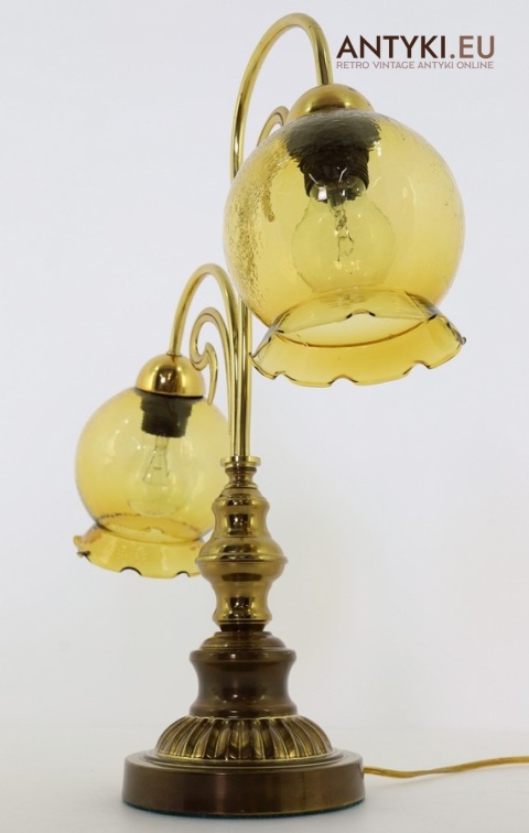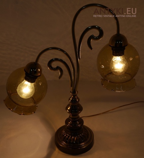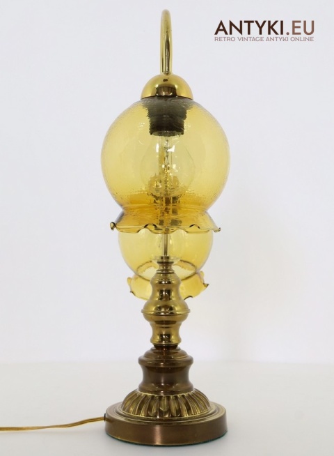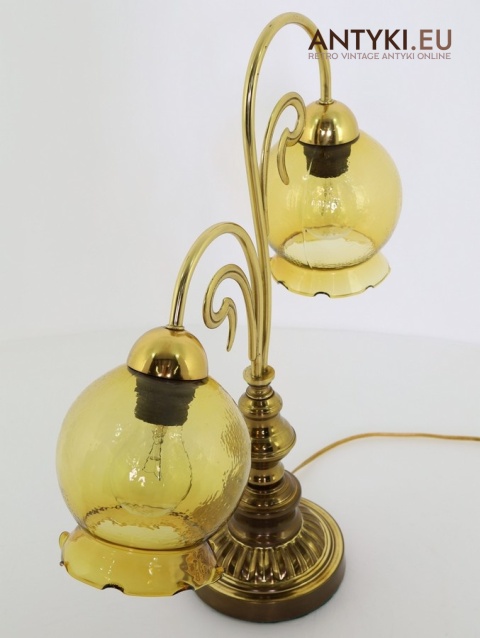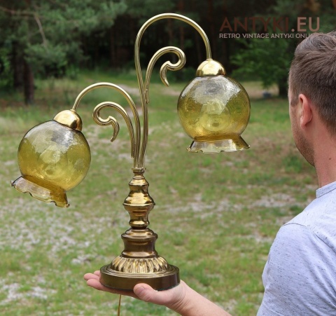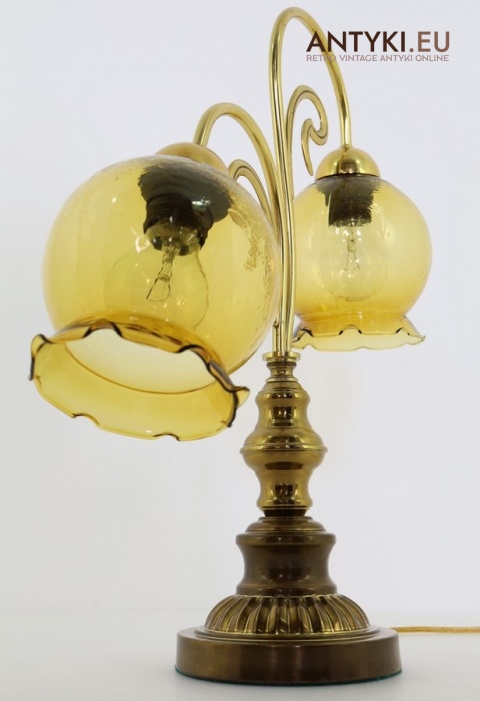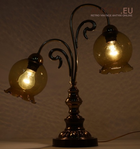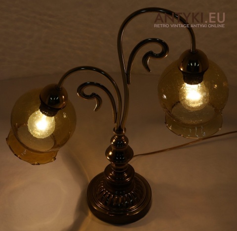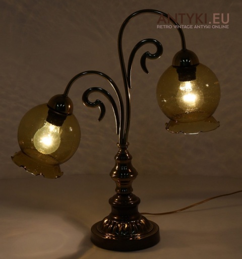 Ta antyczna lampa stołowa znakomicie sprawdzi się w salonie, gabinecie, sypialni, a także w klimatycznych przestrzeniach jak hotel, restauracja, kancelaria adwokacka czy stylowa poczekalnia. Jej bursztynowe klosze pięknie rozpraszają światło, tworząc przytulny nastrój – takich lamp już się nie produkuje, więc to świetna okazja, aby wzbogacić wnętrze o wyjątkowy, niepowtarzalny element dekoracyjny.