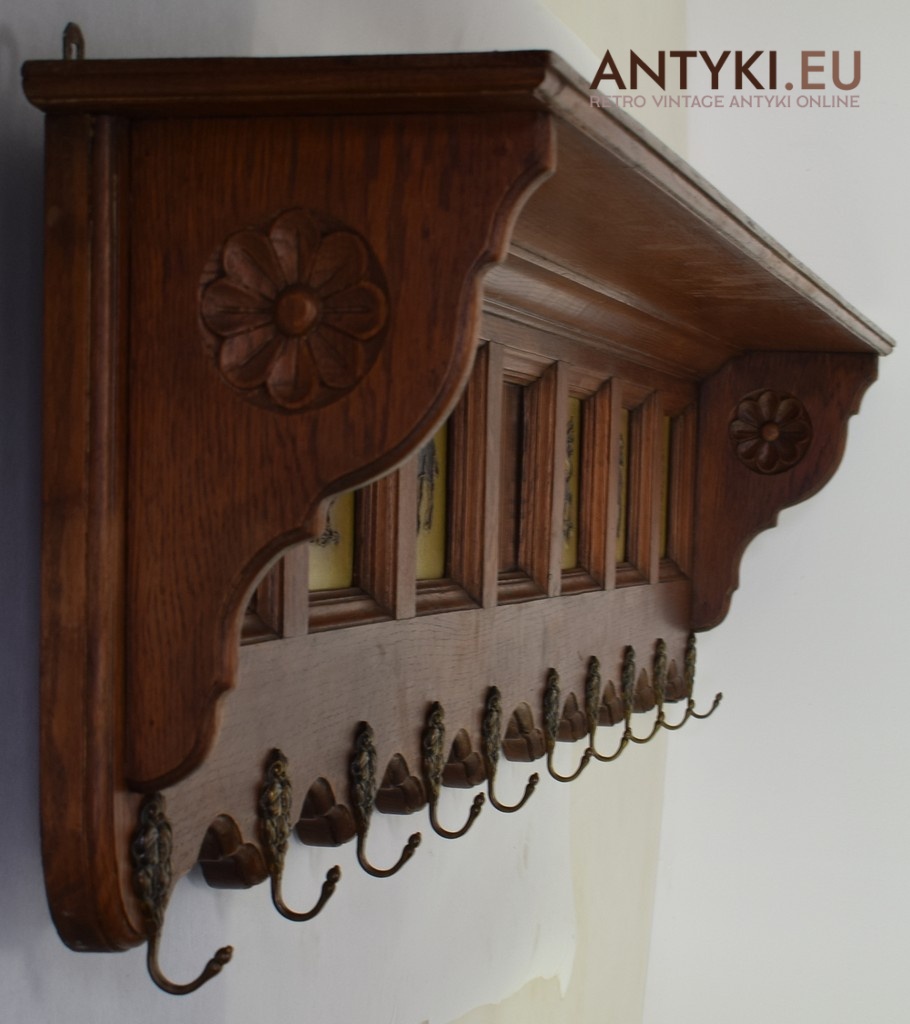 XXL! Duży eklektyczny wieszak dębowy z 1940 roku. Antyki starocie.