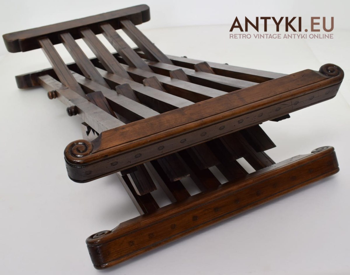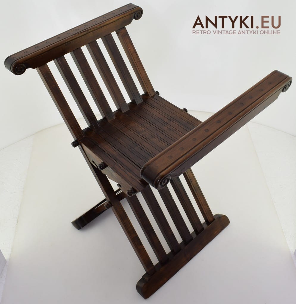 Starodawne składane krzesło nożycowe – eleganckie siedzisko z epoki, lite drewno dębowe z dawnych lat