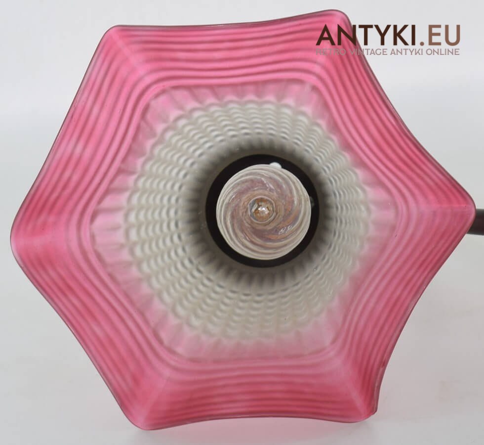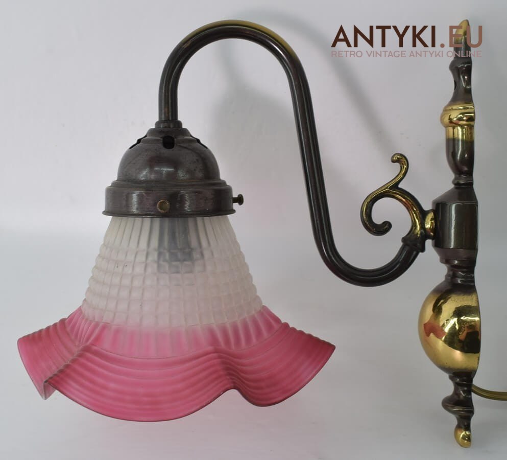 Zabytkowy kinkiet retro vintage ze zjawiskowym różowym kloszem. Antyk.