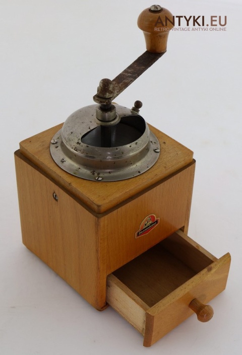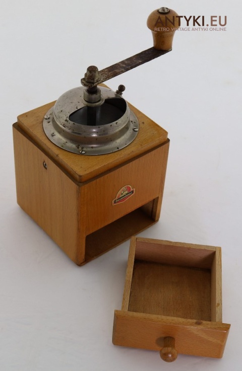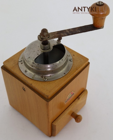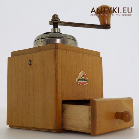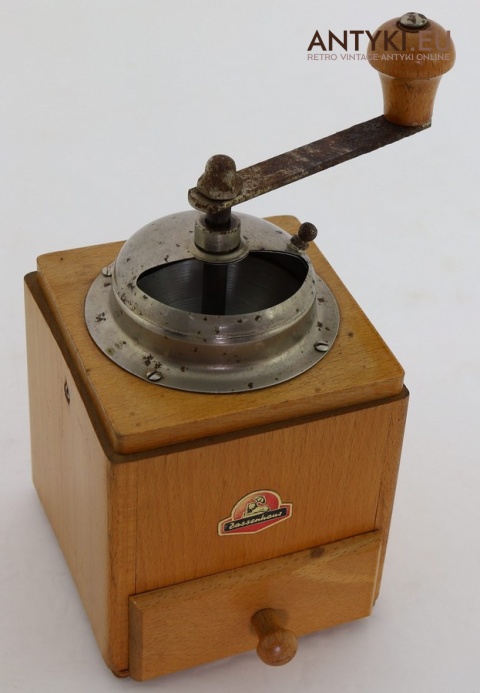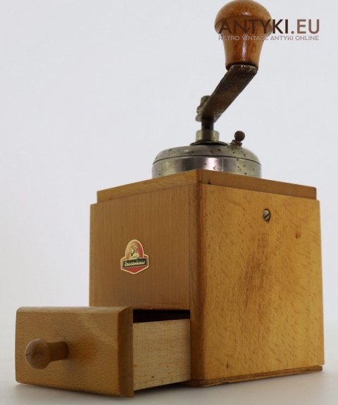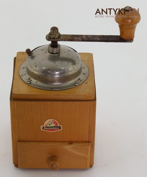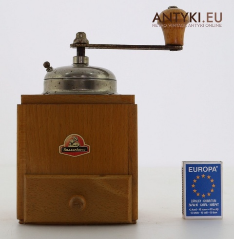 Zassenhaus to renomowana niemiecka marka, która od końca XIX wieku słynie z produkcji wysokiej jakości młynków. Prezentowany egzemplarz to klasyczny model z drewnianą obudową, metalową korbą i przemyślaną konstrukcją, która gwarantowała niezawodne mielenie przez dekady.