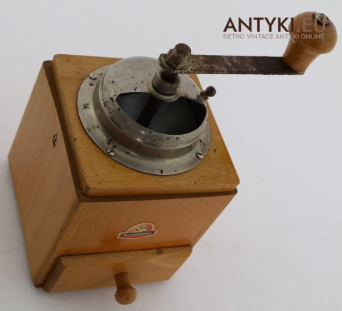 Młynek jest w pełni funkcjonalny – nadal można go używać do mielenia ziaren kawy, co czyni go nie tylko piękną ozdobą, ale także praktycznym urządzeniem codziennego użytku. Tego typu przedmioty nie są już produkowane w tak solidnym wydaniu – to prawdziwy kawałek historii, który może zagościć w Twoim wnętrzu.