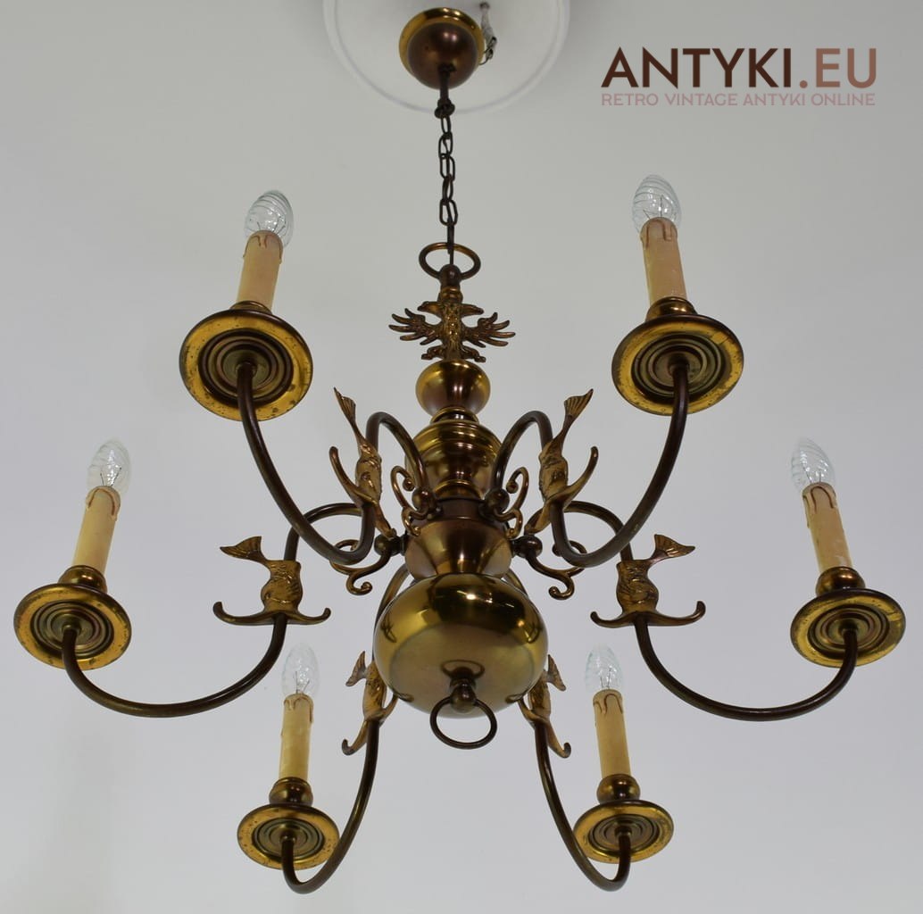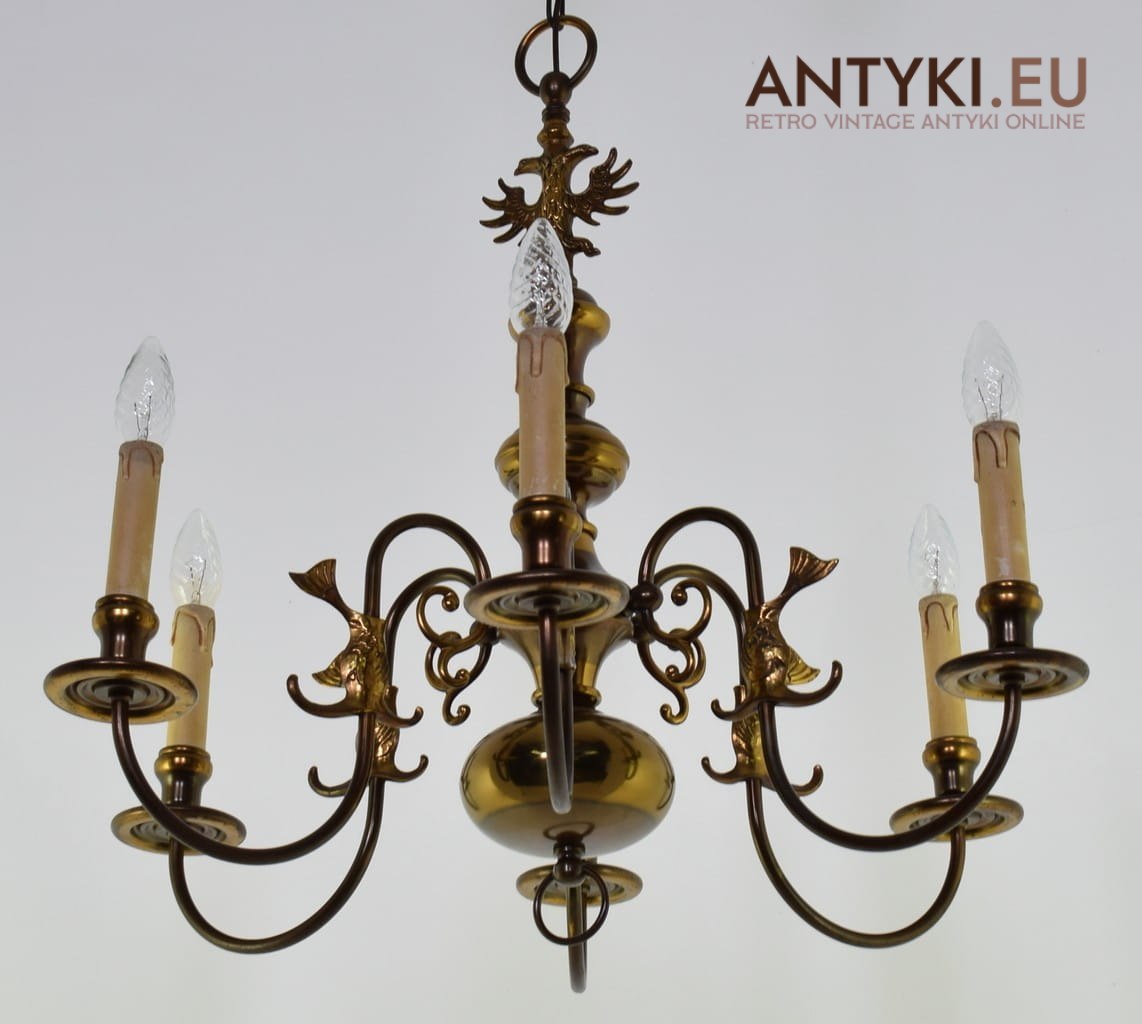 Zabytkowy mosiężny żyrandol pająk