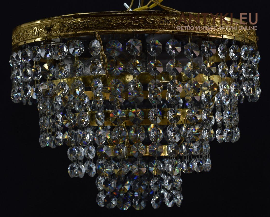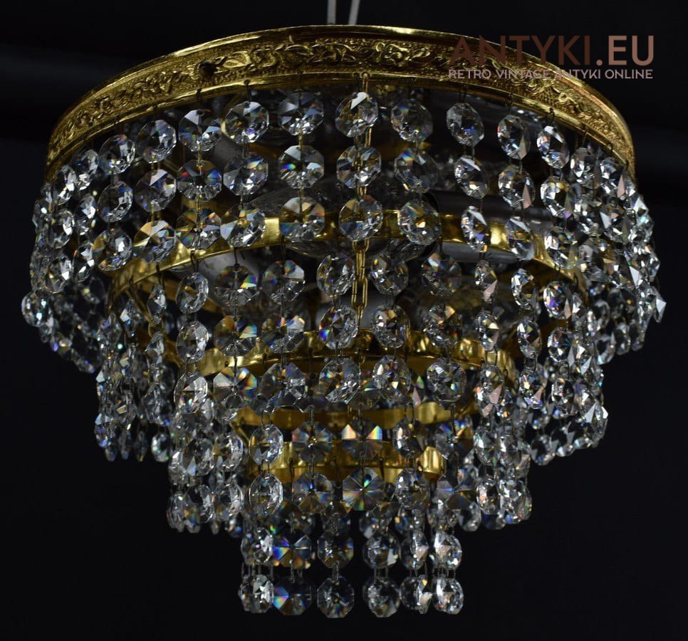 Zabytkowy plafon kryształowy lampa okrągła z kryształami mały plafonik antyk