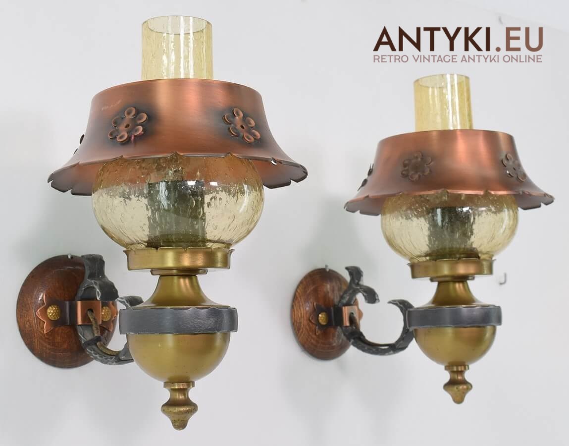 Zamkowe kinkiety lampki ścienne do dworu pałacu karczmy knajpy. Antyki użytkowe.