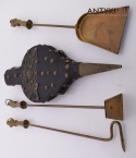 Zestaw narzędzi kominkowych z miechem w stylu vintage.